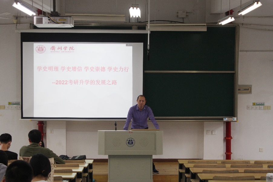 首先,副书记吴志宁以《学史明理,学史增信,学史崇德,学史力行,——2022考研升学的发展之路》为题,分析了当前社会大环境下的考研形式,解析当今社会面临的竞争压力,希望学生能通过考研提升自己的人生价值,在美好的年华,用拼搏和意志叩开人生理想的大门。鼓励2023届学生积极备战考研,不断提升自己的意志力,坚定追梦路上的自信心。