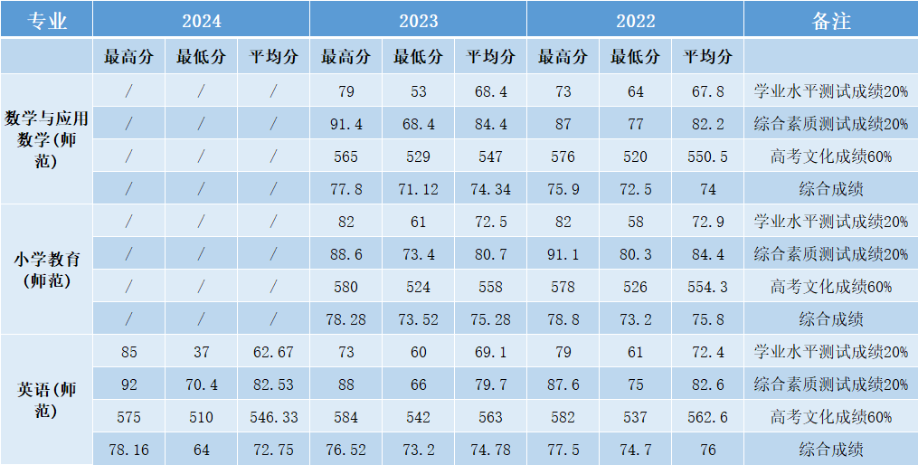 Q 2.报考衢州学院“三位一体”需要具备什么条件? 根据我校招生章程要求,简单来说,满足选考科目要求,学考科目成绩3门(含)以上为A等或A等与B等之和为5门(含)以上,其余为D等(含)以上;对于有学科竞赛、科技创新、语言文学特长、艺术特长、体育特长的考生,学考科目成绩可放宽至均为D等(含)以上(具体专项特长项目详见衢州学院“三位一体”综合评价招生报名系统)。 Q 3.衢州学院2025年“三位一体”通过什么方式报名,何时开始报名? 统一采用网上报名方式,符合报名条件的考生请登录衢州学院招生网(https://zs.qzc.edu.cn/),进入“‘三位一体’综合评价招生报名系统”,根据网上提示的报名流程办理报名手续。 考生先进入浙江省教育考试院报名系统,完成报考学校和报考专业的选择(3月2日9:00至3月14日17:00);再在学校报名系统完成材料上传和信息确认(3月16日9:00至3月20日17:00)。 Q 4.考生在网上报名时需要提交哪些申请材料,如何提交? 考生若有符合报名系统中公布的专项特长项目,须在学校报名系统中进行填写,并按要求上传相关材料证明(证书原件拍照或扫描,JPG格式),上传文件确保清晰、无变形,单个文件大小不超过3M,无须寄送纸质材料。 其他无专项特长的考生只需登录学校报名系统进行材料确认即可,无需提交材料。 Q 5.学校如何确定入围综合素质测试名单? 学校将对考生申请材料进行书面评审,按其学业水平测试折算成绩(A等计10分、B等计7分、C等计4分,其他等级不计分,满分为100分)从高分到低分确定入围综合素质测试名单,入围人数为分专业招生计划数的8倍;最后一名折算成绩相同,则依次按学业水平测试成绩A等、B等、C等科目数确定,若再相同则一并入围综合素质测试环节。符合相关专项特长的考生,经专家委员会认定,直接获得综合素质测试资格,不受通过书面评审的人数比例限制。 Q 6.考生何时可以查询书面评审结果和缴纳报考费? 书面评审结果与入围综合素质测试考生名单查询、缴纳报考费时间为4月4日至4月7日。考生须在4月7日前通过手机支付宝缴纳报考费,报考费140元/人。 Q 7.衢州学院2025年“三位一体”综合素质测试采用什么方式,何时开始? 综合素质测试采用面试的方式进行,主要考察学生综合素质、专业素养、专业潜质等。测试分组和测试顺序由抽签决定。测试具体内容包括仪态仪表、口头表达、特长展示等。综合素质测试时间为4月12日。 注:4月14日起考生可查询综合素质测试成绩及入围考生公示名单(具体以学校招生网站公布的时间为准)。 Q 8.获得入围资格的考生,填报高考志愿需要注意什么? 获得我校综合评价招生入围资格的考生仍须参加浙江省2025年普通类高考。录取安排在普通类提前录取,入围考生必须在普通类提前录取的五个院校志愿栏的第一志愿栏填写我校志愿,考生填报的专业志愿须与本人参加综合素质测试的专业相一致,且高考文化成绩要求不低于普通类第一段分数线,否则无效。 学校根据考生综合成绩,按照分专业招生计划数1:1划定校内投档基准线。对进档考生,按综合成绩从高分到低分择优录取。其中报考英语(师范)专业的学生,要求外语语种为英语,高考英语单科成绩不低于105分。若没有被我校“三位一体”综合评价招生录取,不影响后续各段的正常录取。 Q 9.考生综合成绩如何计算? 综合成绩=学业水平测试成绩(折算成满分100分)×20%+综合素质测试成绩×20%+高考文化成绩(折算成满分100分)×60%。 Q 10.通过“三位一体”招生录取的考生,入学后能否转专业? “三位一体”综合评价招生录取的学生,入学后如需转专业,与普通录取学生相同,依据《衢州学院学生转专业管理办法》执行。 Q 11.学校近三年“三位一体”录取情况如何?